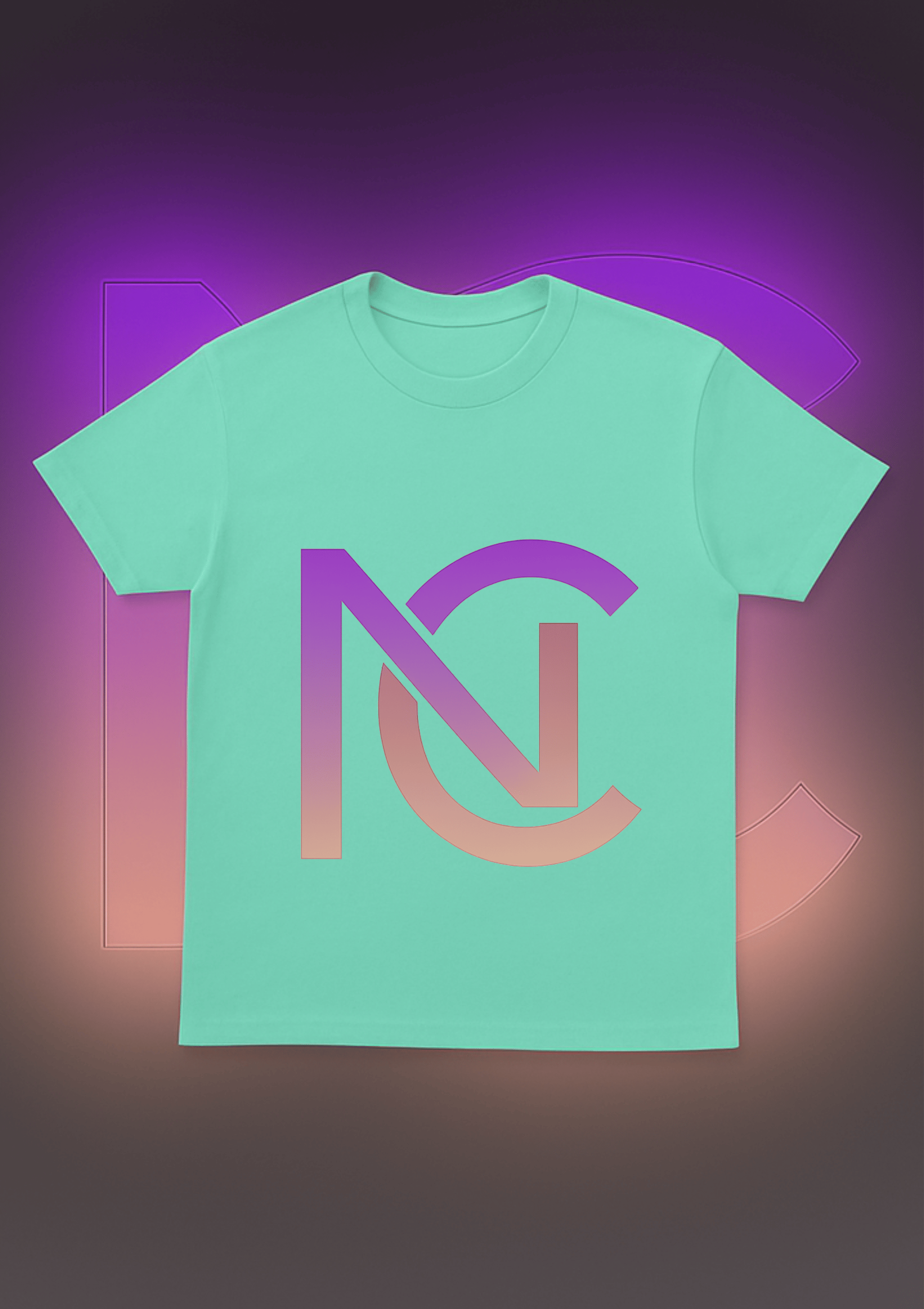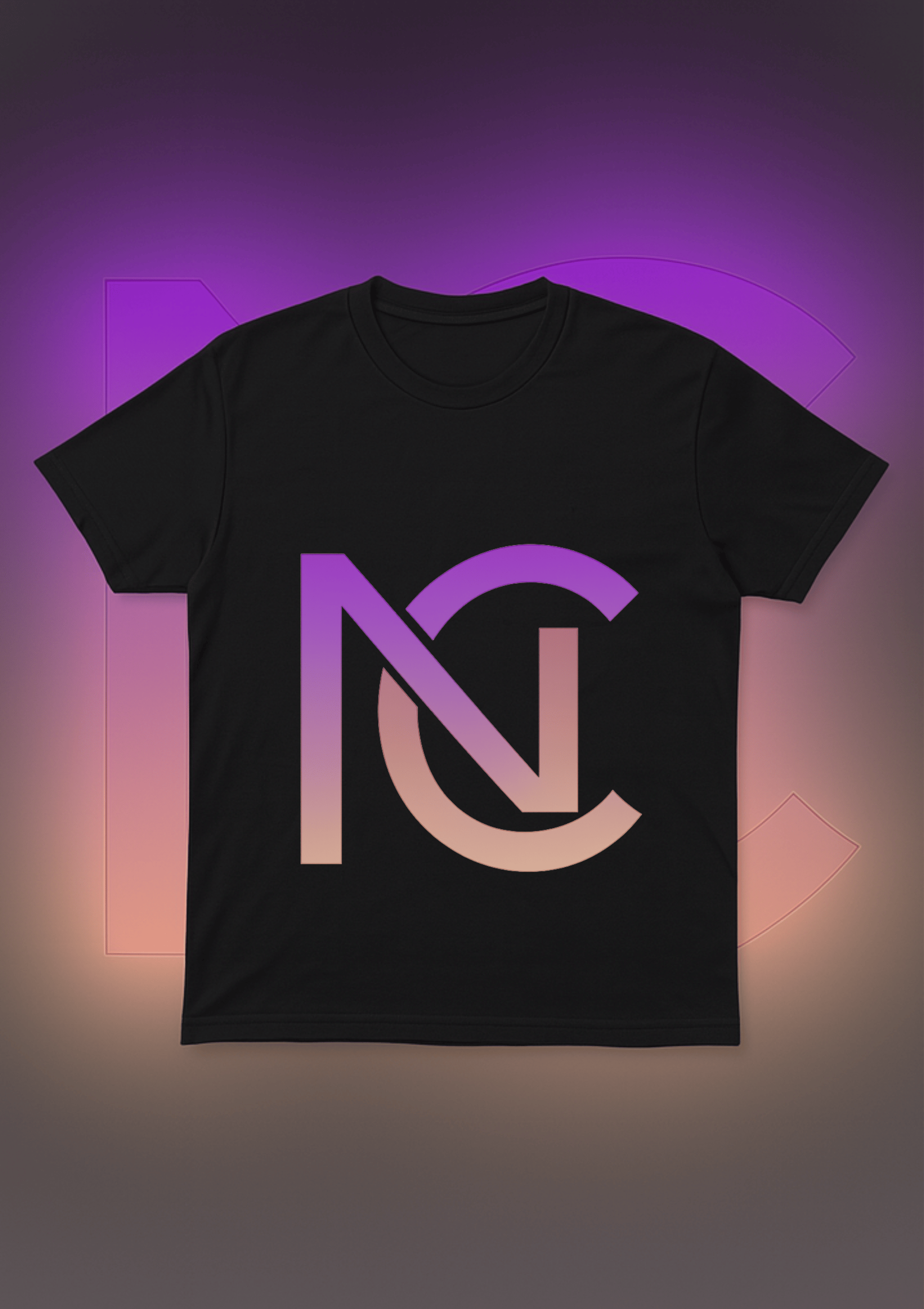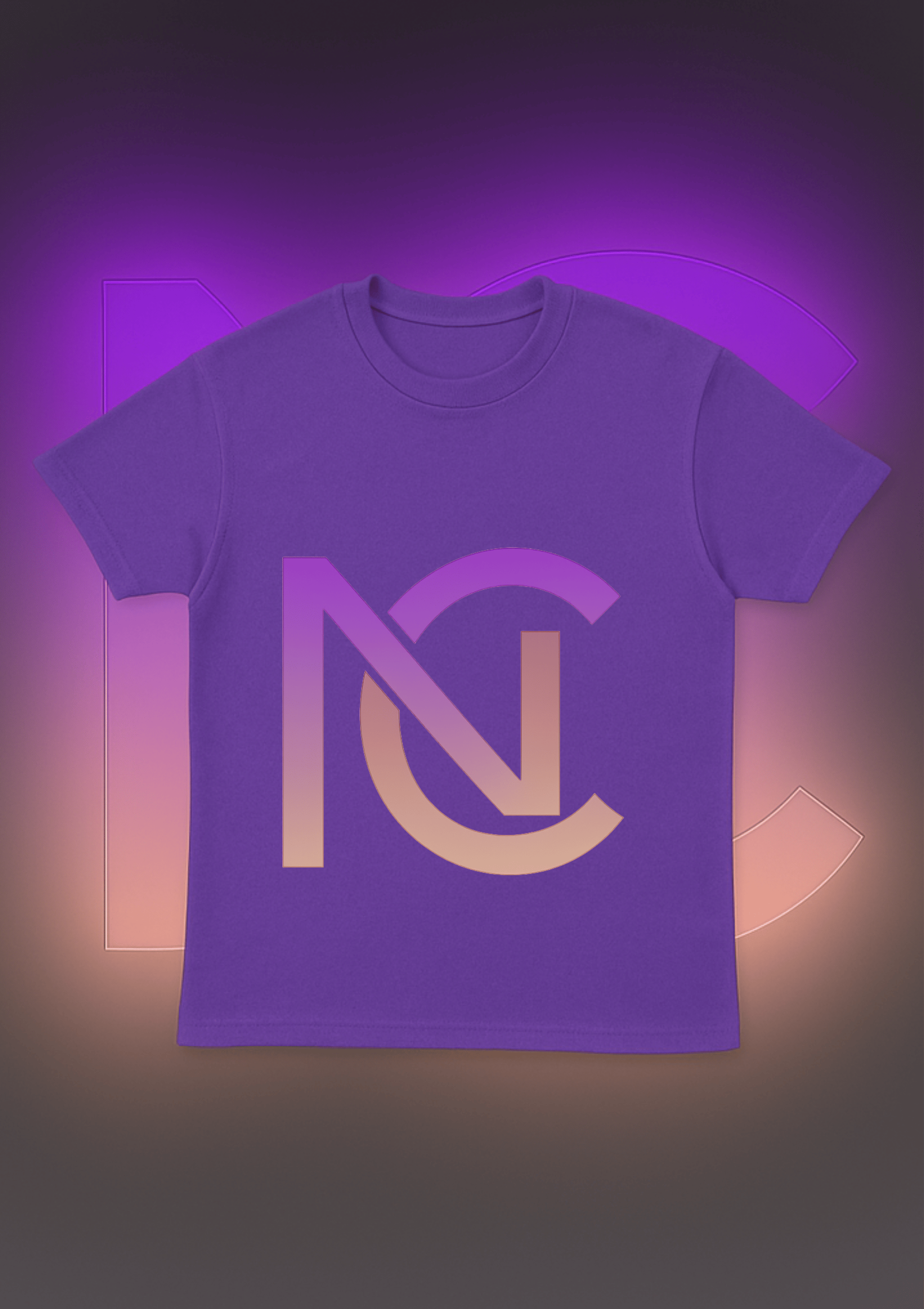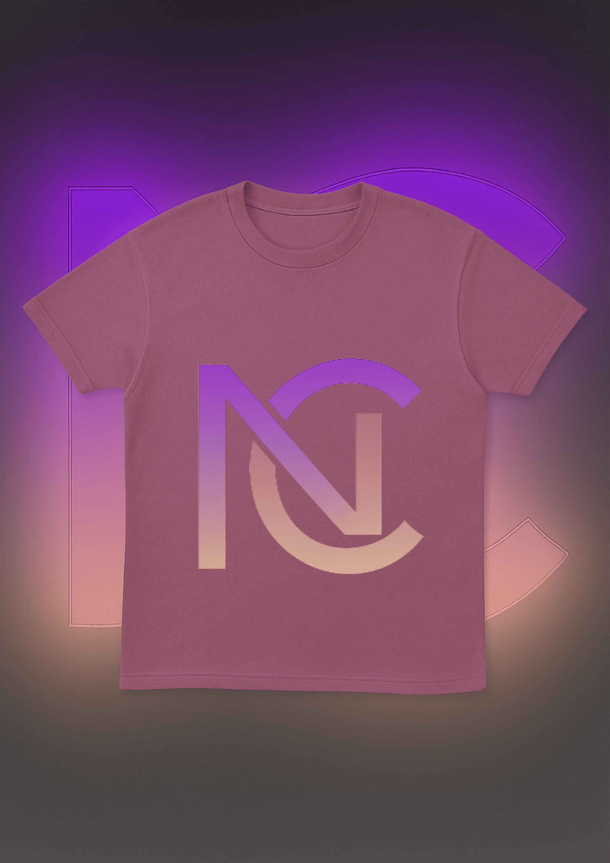 Bold oversized NC logo in rose gold & purple gradient